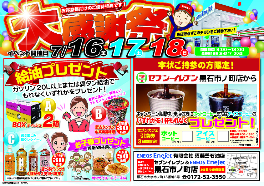 つきましては、7月16、17、18日の3日間、大感謝祭を開催させていただきますよ。