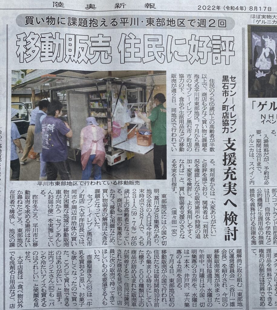 セブン-イレブン黒石市ノ町店の移動販売車が、過疎地域の方々へ食品・生活用品を届けています。