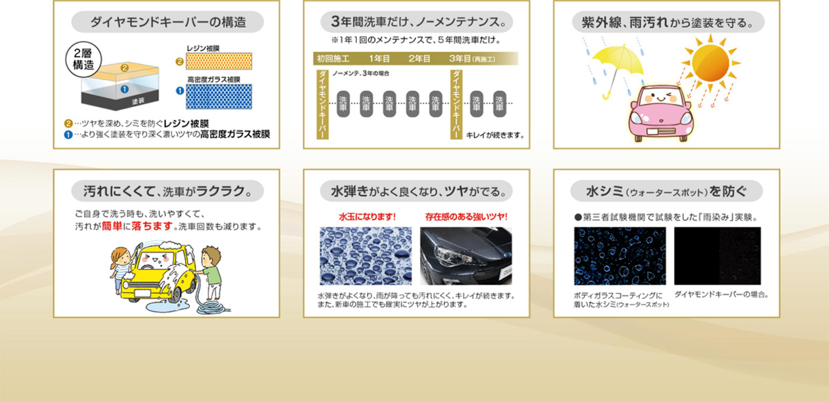 KeePerのガラスコーティング「ダイヤモンドキーパー」と「クリスタルキーパー」は、従来のポリシラザン系ガラスコーティングとは異なり、よほど塗装の劣化が進行していない限り、経年車であっても研磨不要で驚きのツヤを出すことができます。その被膜の仕組みをポリシラザン系ガラスコーティングと比較しながら解剖します!